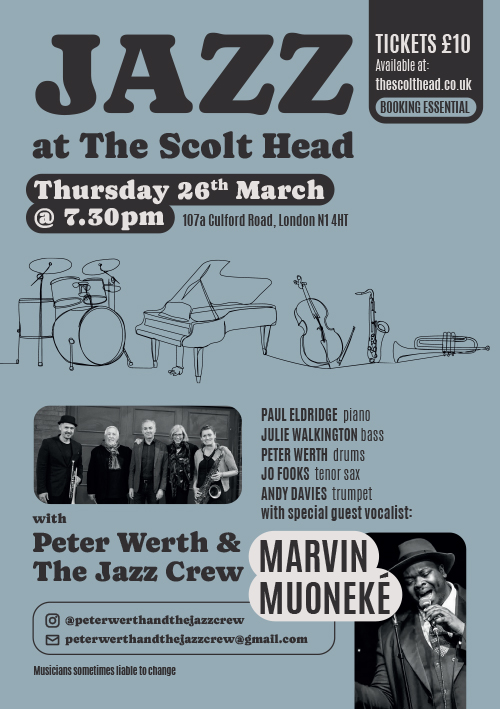 Peter Werth and The Jazz Crew return to The Scolt Head on January 25th, Irene Serra on vocals. We look forward to seeing you thereThursday 25th January 7.30pm